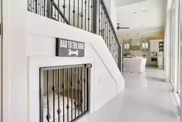 如果你住的是带楼梯的复式或者半山豪宅,那么占地巨大的楼梯下部空间无疑是作为“宠物之家”最佳省空间地之一。