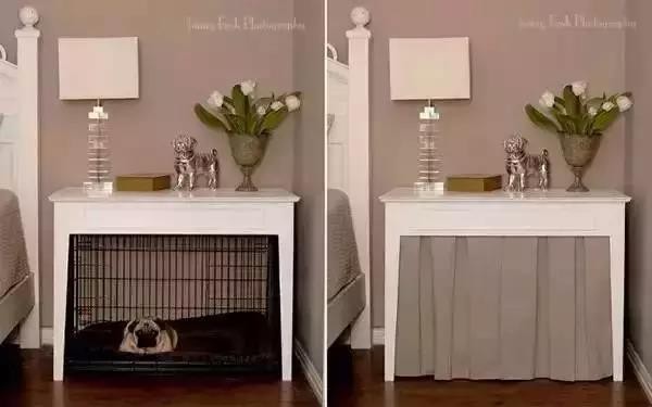 一款隐藏式宠物窝,保持家具的造型只留一个小小的入口即可。如果不喜欢木色,也可以刷上白色的染料,除了充当宠物窝外,还可以用来摆放绿植哦。
