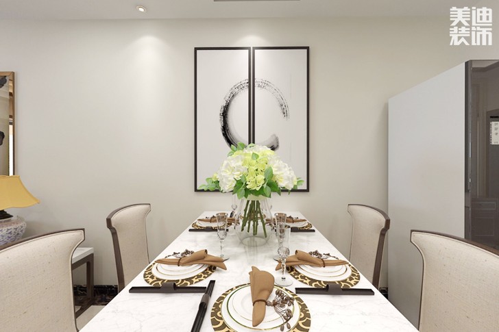 创造性的以古代的算珠为书房古典文化的象征,和古典气息的来源,美观又创意,白色的餐桌和白色的墙相呼应,旁边的四把手工的藤椅,民族风味有随之欲出,表现了主人崇尚自然的气节。