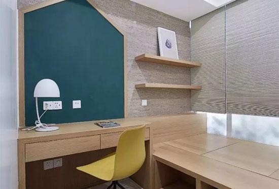 如果家里的小朋友喜欢画画,或者是自己想要随时记录生活中的灵感,可以考虑在书桌上定制出一块黑板墙或软木板,让小 小的书房空间变得更加文艺,让方便擦写的小黑板更好的点缀生活。