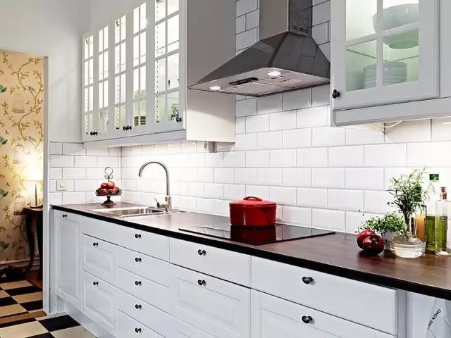 白色小格瓷砖铺贴的背景墙着实耗费不少功夫。