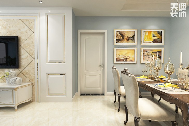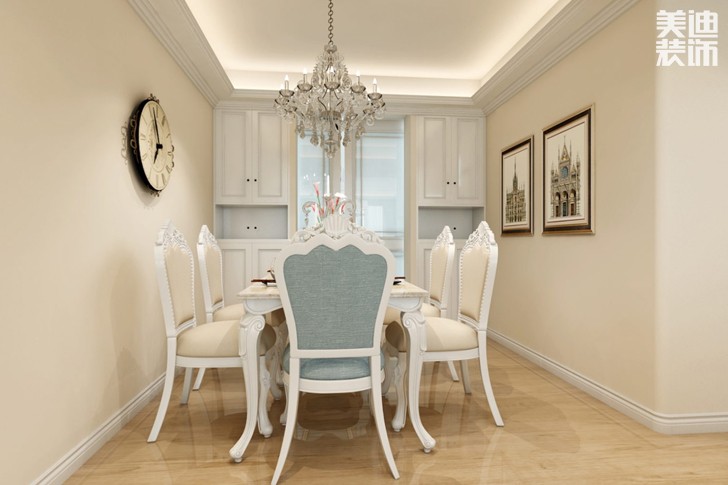 简欧风造型较为简洁,没有过多的修饰,讲究空间线条的律动感。将雕刻装饰运用在装饰品上,暖色调的烘托,让原本空间变得更加华丽丰富。