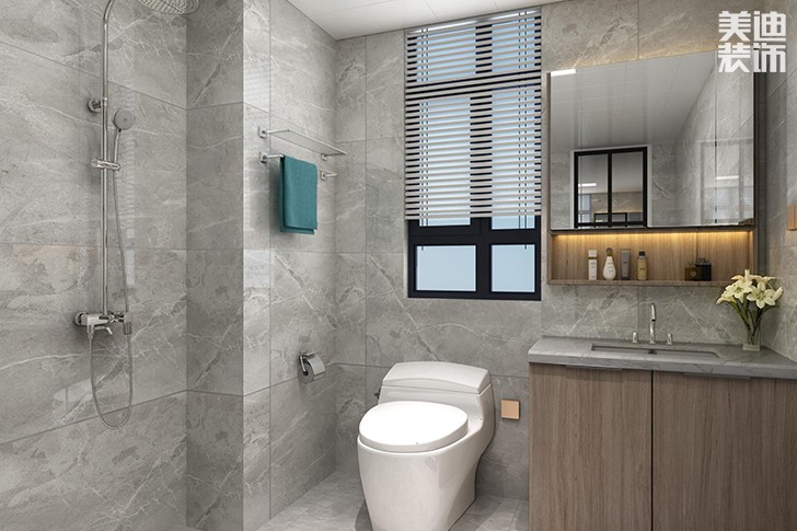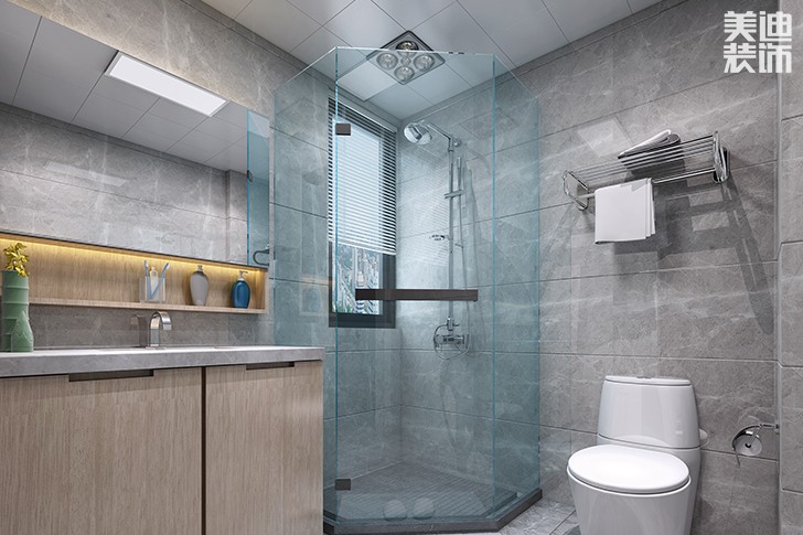 对于空间稍微大一些的卫生间来说,在卫生间里面的角落可以安装浴房,把洗浴单独分开,避免水花、水汽扩散,有效干湿分离。
