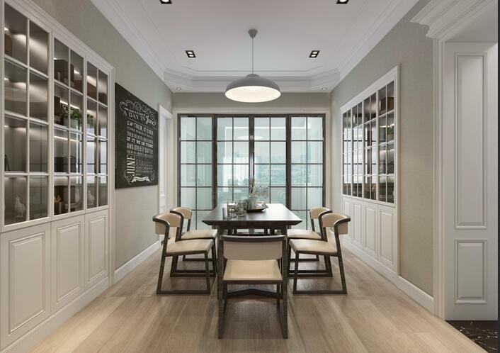 餐厅无非就是一张餐桌,几把椅子,顶多再配上餐边柜、酒柜,但如果赋予不同的色调,餐厅立刻就活色生香起来,米白原木色搭配温暖大方,玻璃门使空间更加宽敞舒适。
