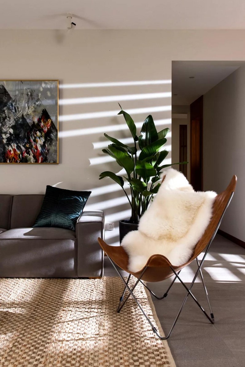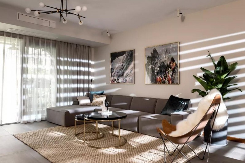 沙发与窗帘选择了不同深浅的灰色,加上抱枕与装饰画的点缀,简约且有层次感,舒适不失精致感。