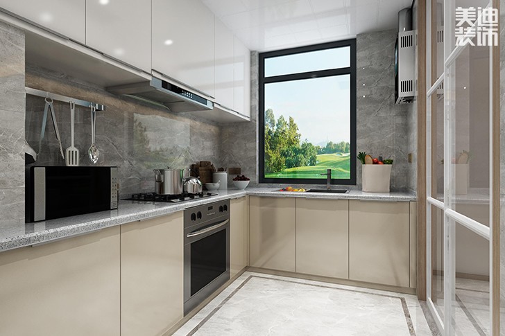 这款l型厨房装修融入的欧式文化,橱柜的设计融入了欧洲文明丰富的艺术底蕴和现代立异设计理念,使得人们得以在安静幽雅中逐渐品味。