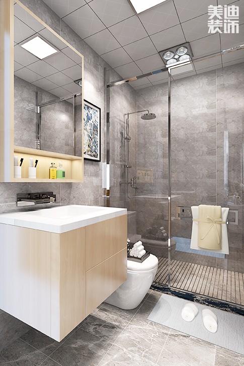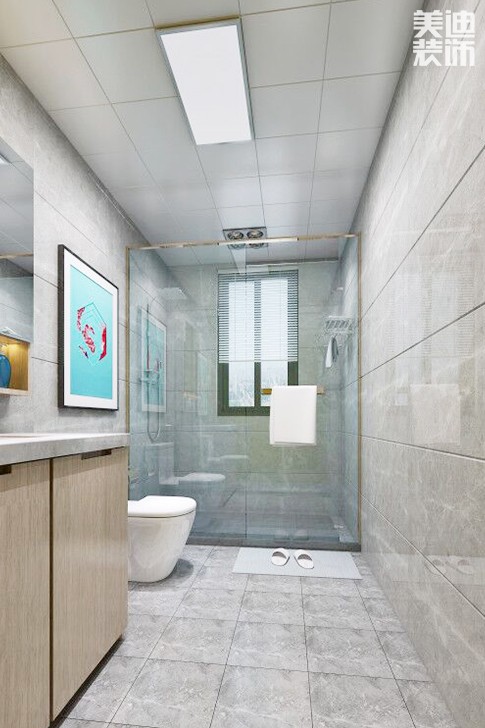 卫生间的地面铺设选择全瓷砖,因为全瓷化瓷砖有硬度高、不易碎裂、抗污性能高、吸水率低和平整度好 等特点。有人说全瓷砖防滑性不好,其实市面上有专门卫生间全瓷防滑砖,可以有效解决防滑问题。