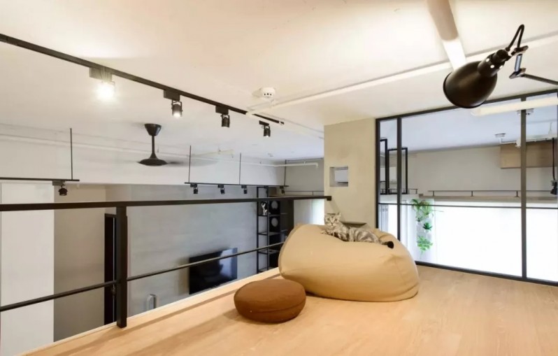 为了能够有更多的活动空间,设计师对房屋进行了改造,在厨房的上方增加了一个简易的书房,看起来个性时尚。