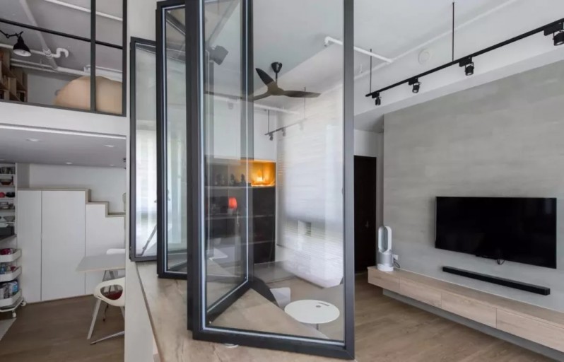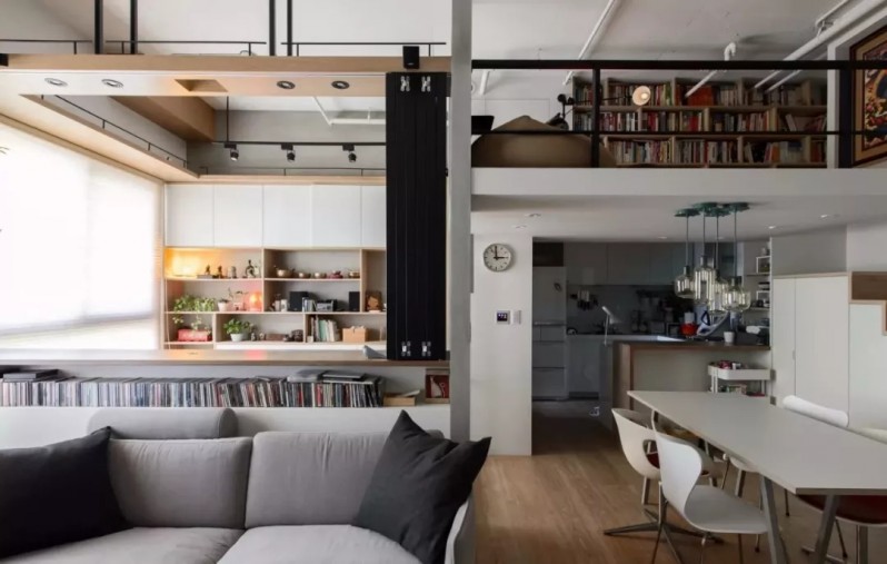 这套房子总共70平米,户主为了能够有更多的活动空间,对房屋进行了复试改造,在厨房的上方增加了一个简易的书房,看起来个性时尚。
