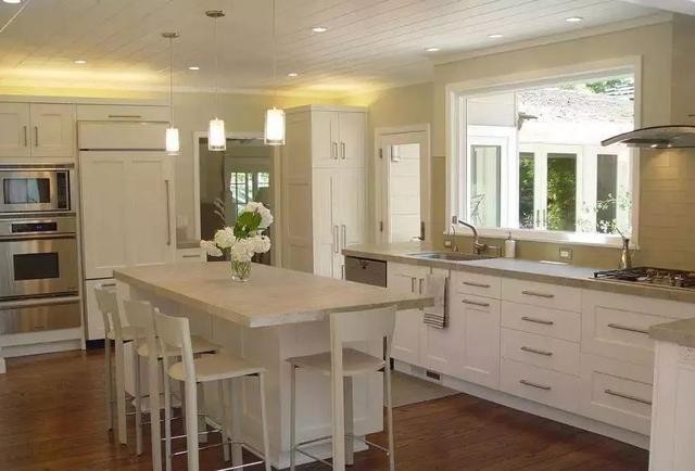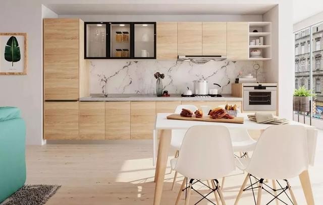 开放式厨房的家具一定要选择易于清洁的家具,不能只考虑美观功能,家具的清洁也要纳入考虑范畴。是开放式厨房装修的不二选择。