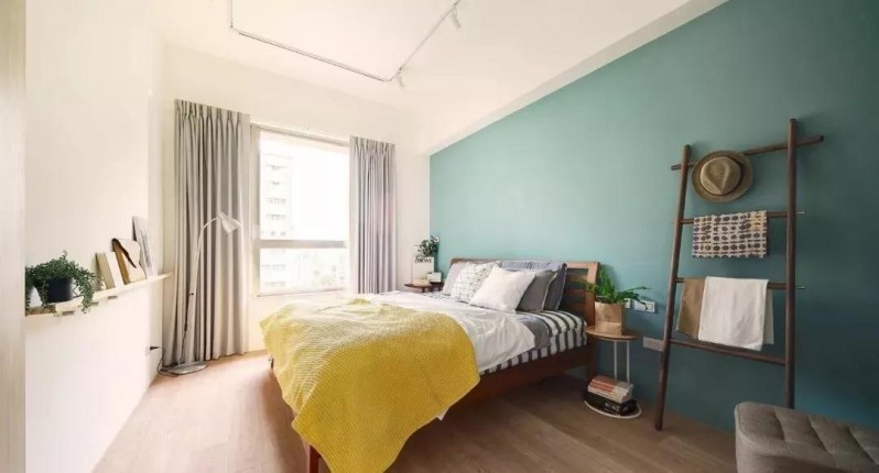 打开主卧房门,看见湖水绿主墙与衣柜大胆的豆沙红争宠着,缤纷又和谐的组合让空间处处充满惊喜。业主说“我喜欢每天被这些色彩环绕,觉得很放松、很舒服,心情很好!”这是专属于他们的特调,也是他们梦想中的家。