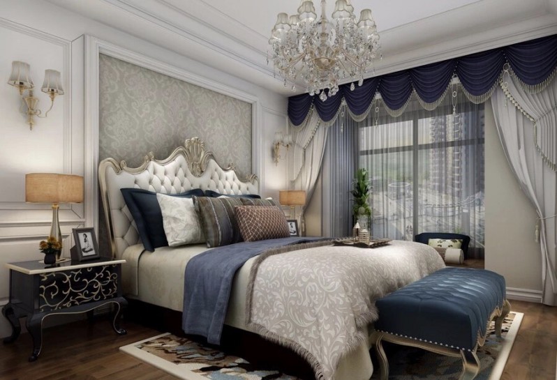 欧式床为欧式风格的一大特点,白色护墙板的优雅,搭配壁纸,演绎着欧式的尊贵与风情万种,整个房间不仅豪华大气且让人感到惬意和浪漫。