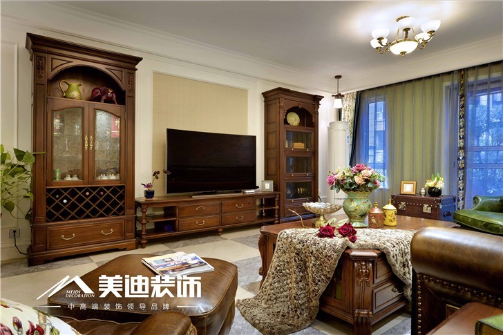 美式田园倡导的是务实规范成熟,木材,石材具有质朴而温暖的材料性格,他们的应用使室内空间更富亲和感,创造出具有温暖色彩,富有生活情趣的家居环境。