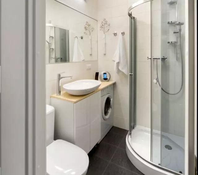 卫生间绝对是放洗衣机的绝佳场所,一般卫生间都会预留出一个属于洗衣机的进水口和出水口,所以相对来说上下水也很方便。