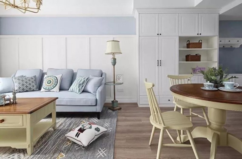 今天给大家介绍的美式非常的“善变”,你可以从中找出北欧风的大方休闲,也有简约系的清新简单,还有一丝地中海般的梦幻和法式浪漫,整个家在清新蓝的主调上,大胆运用多种色彩,将家打造成一个很舒服的空间。