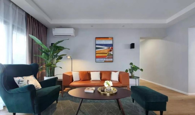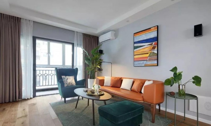 沙发与装饰画的色调的呼应的效果,色彩层次丰富,且有更为直观的良好视觉体验。