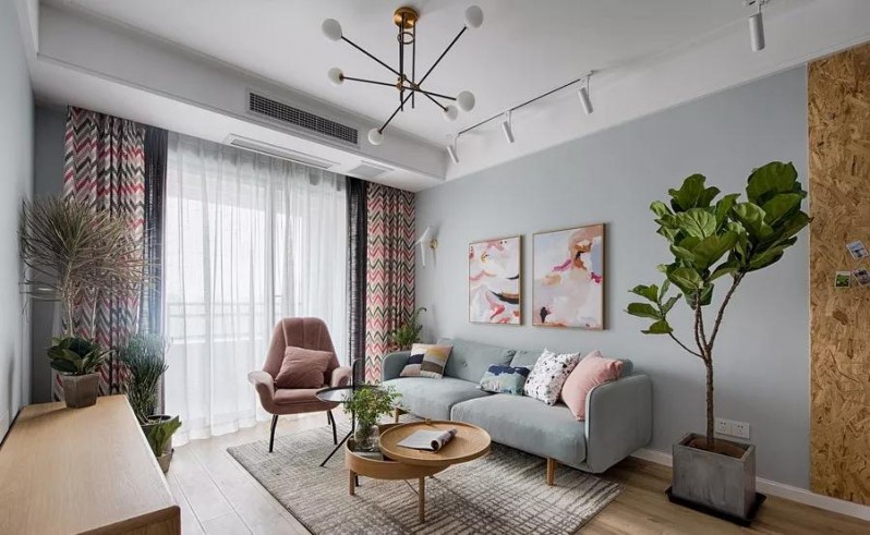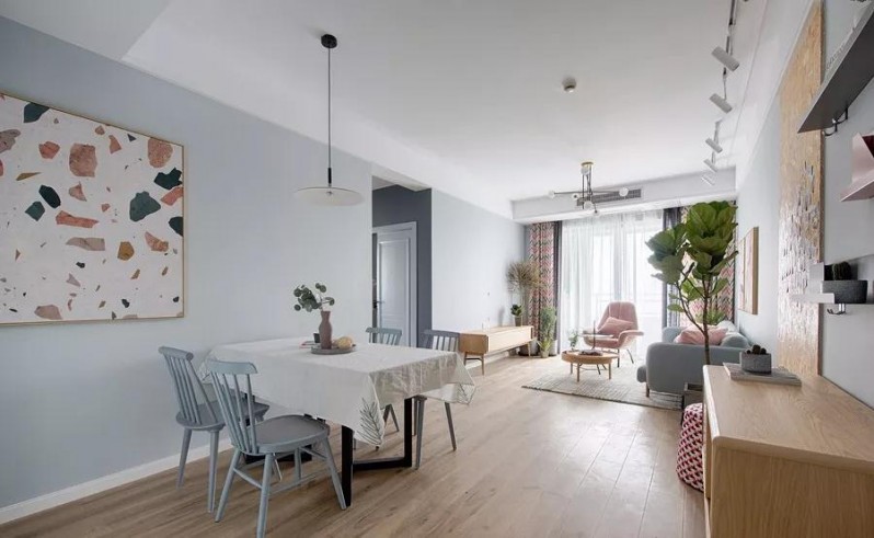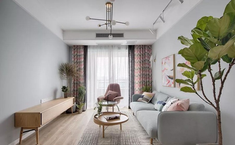 客厅以浅灰与白为基调,辅以简约的木质家具,打造雅致而清新的家。