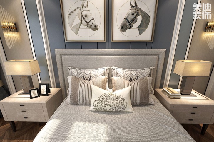 卧室宜选用浅黄色、淡蓝为主;男生适合冷色调带点浅蓝色、女生适合暖色调带点淡粉色;新婚夫妻适合暖色调,颜色可深一些;中老年人适合淡灰色、白色。