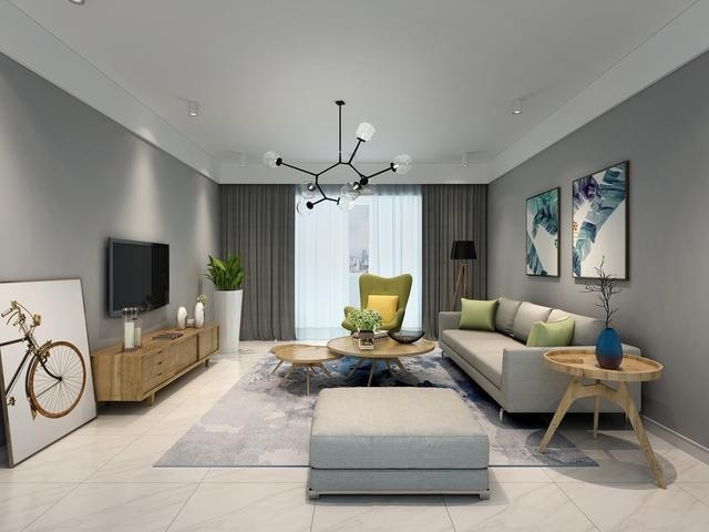 这次装修选择的是比较潮流的北欧风格,当初设计师建议业主这样的三居室最好是选择简美比较好,但是业主还是坚持跟潮流。于是客厅的家具都是选购的北欧风格,墙面的颜色也是和家具的颜色一致。虽然这样的搭配比较协调,但是整体的感觉比较压抑,不如简美风格的那样活泼。
