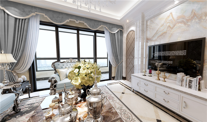 欧式风格窗帘软装最好采用高档的丝质材质,才能带给人一种高贵典雅的气息,采用亚麻及帆布的面料会让效果大打折扣。