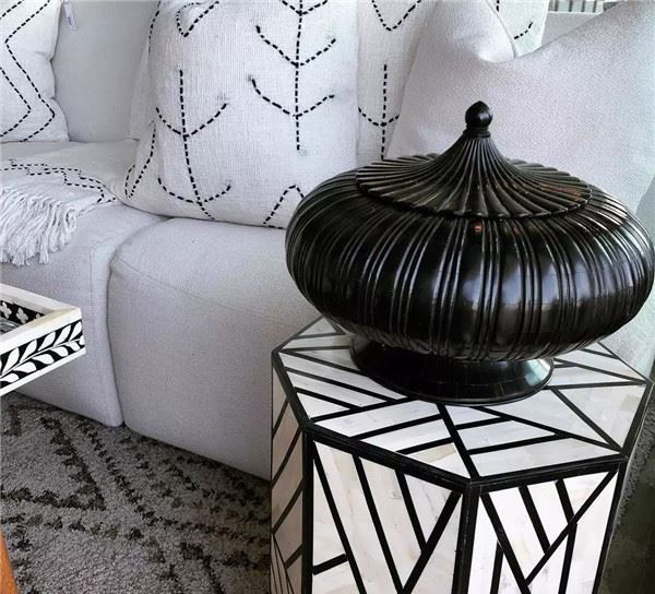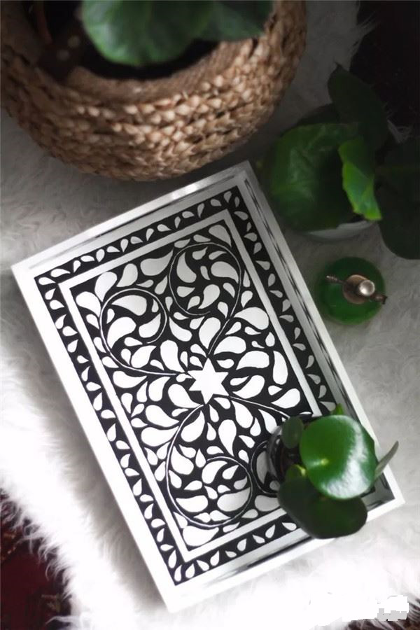 TIP:骨木的价格偏贵,也可以自己DIY一个,购买一次性墙纸和蜡纸,把它们剪成你想要的样子,贴在小家具的表面上。