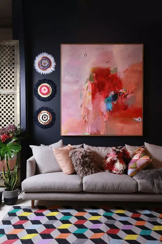 TIP:大尺寸的画作挂于墙上,显得更加大气,不过大尺寸画作在墙上的空间不要太满,一定要注意适当的留白。