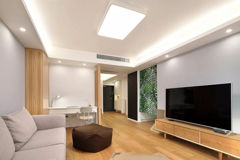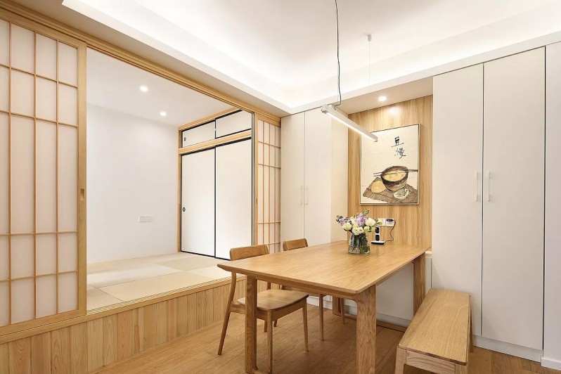日式装修风格,以舒适感和清新感为主,这款90平方房子装修,以原木色为主色调,通过合理的空间调配和协调,房子整体设计简洁,明快,加上一些装饰作为搭配,不仅视觉上扩充了空间,同时也营造了一股自然的氛围。