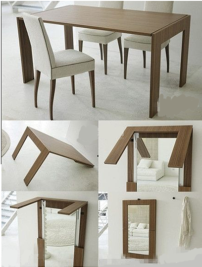 这个节省空间的创意家居是一个桌子,这个一个需要时打开,不需要时就可以收起来的,收成一个长方形的小片状很节省空间。而且这个桌子不像我们在学生使用的可折叠书桌,同样简单,但是看起来却是现代简约的风格,显得简单大方又不是情调,年轻人应该比较喜欢。而且现在北漂的80后90后占多数,很适合她们的小小房间,生活本来就已经很无情了,就自己给自己创造一点点情调,增添一点点浪漫吧!