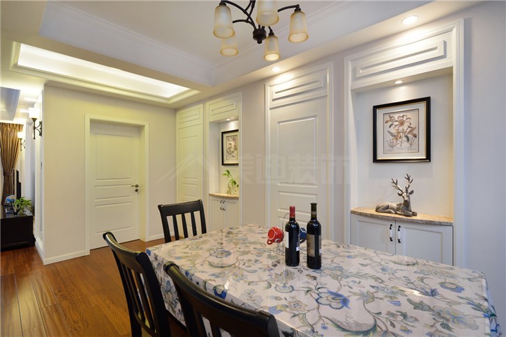 餐厅的面积不大,餐桌的大小恰到好处,简约美观的同时还增加了用餐人数的空间。富有艺术气息的动物装饰及壁画给人一种温暖愉悦的感觉。