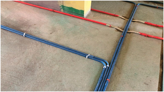 在各强弱电交叉处,用锡箔纸包裹,其目的减少信号干扰。同时,定距安装管道卡口。在工地现场,我们的项目经理也提醒业主,在水电验收时,可注意几点: