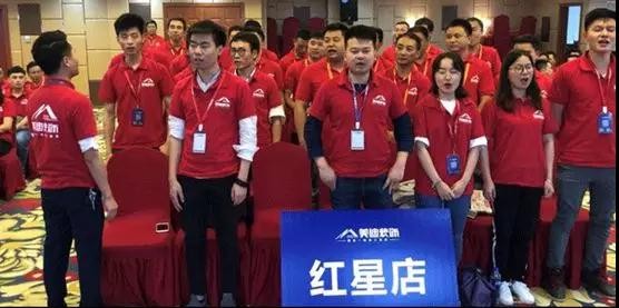 大会于下午四点正式开始,由美迪装饰营销中心常务副总经理贺军主持,在各门店项目经理与监理的的组织下,首先由我们的匠心工人发表了团队宣言。