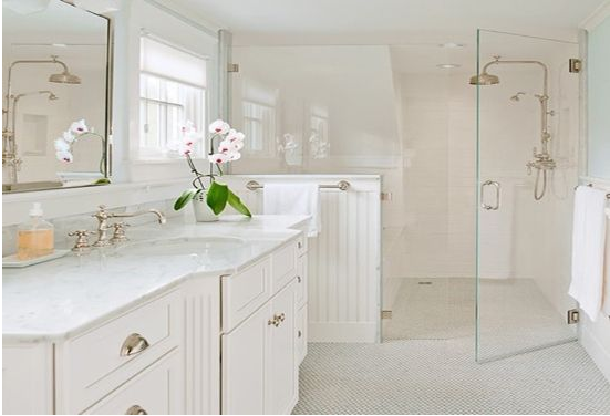 此方法主要适合需要装修的人士,因为该方案需要花点功夫,需触动工班重组卫生间;用雾玻璃取代水泥墙,是可以由室内光源改善卫生间里光线不足问题。