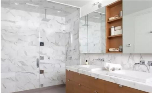 卫生间无对外窗,采光也就成了另一大问题;深色系装修风格只会让该空间更加阴暗沉重。相反,浅色系、亮色系却可以提亮空间感;