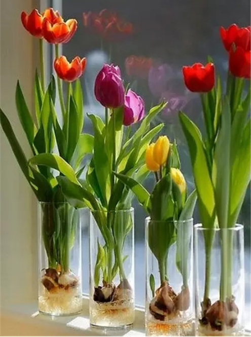郁金香高雅脱俗、清新隽永,是一款具有高贵、神秘气质的鲜花。早在17世纪奥斯曼帝国的御花园中,曾专门种给皇室贵族观赏。郁金香的花朵色彩艳丽、变化多端。不同花色的郁金香,其寓意和花语是不一样的。黄色郁金香的花语和寓意是高雅、珍贵、财富、爱情、友谊,粉色郁金香的花语和寓意是美人、热爱、爱惜、友谊、幸福,红色郁金香的花语和寓意是爱的告白、爱的宣言、喜悦、热爱,紫色郁金香的花语和寓意是高贵的爱、无尽的爱。