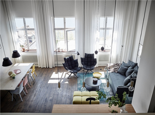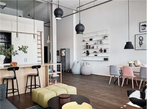 除了经典的黑+白,浅色(如白色、米色、木色)+鲜艳纯色(如绿色、黄色、蓝色)也是北欧风格装修常见的色彩搭配。