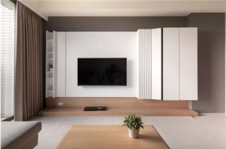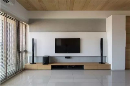 许多业主认为,电视与背景墙离近点没有问题,甚至认为距离近了反而可与墙体融为一体。这种想法是不正确的。因为如果贴的过近,过一段时间后,就会发现背景墙这块的色泽与整体不符,甚至被电视烤出个黑印。因此,电视与背景墙之间应该有合理的距离,以防止电视长期运作,分散的热量对墙面造成损伤。
