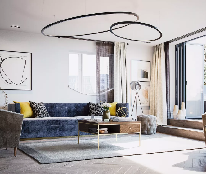 家具和布艺软装进行对比也是个好办法,比如室内色调以浅色为主,抱枕、窗帘、地毯等布艺软装的颜色接近,而沙发和椅子则颜色较鲜明,这样对比层次感强烈。再通过艺术壁画、特色吊灯等装饰品,提升整个空间的艺术品味。