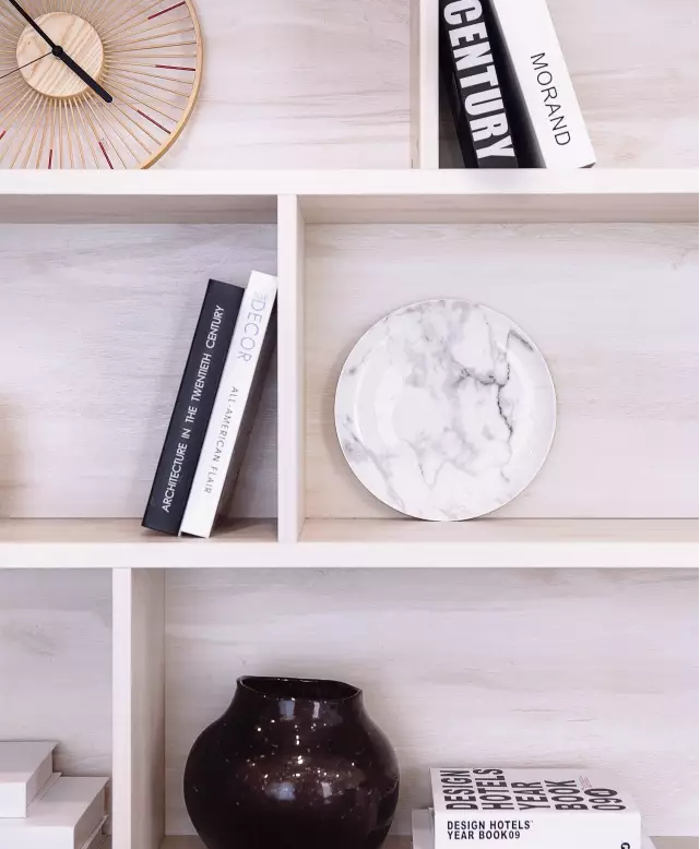 客厅通过白色与木色来提亮空间,搭配简约而别致的功能性家具,整体看上去淡雅、柔和,带来一种宁静的感觉。