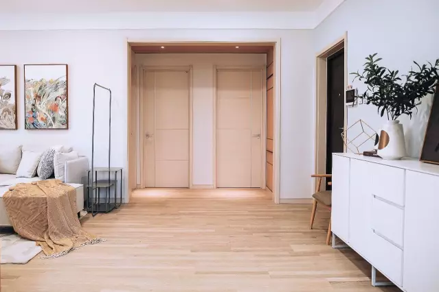 入户左侧有一个通体白色的玄关柜,用来收纳鞋子或其他日常物品,简单又实用,大大保证了门厅的整洁美观。
